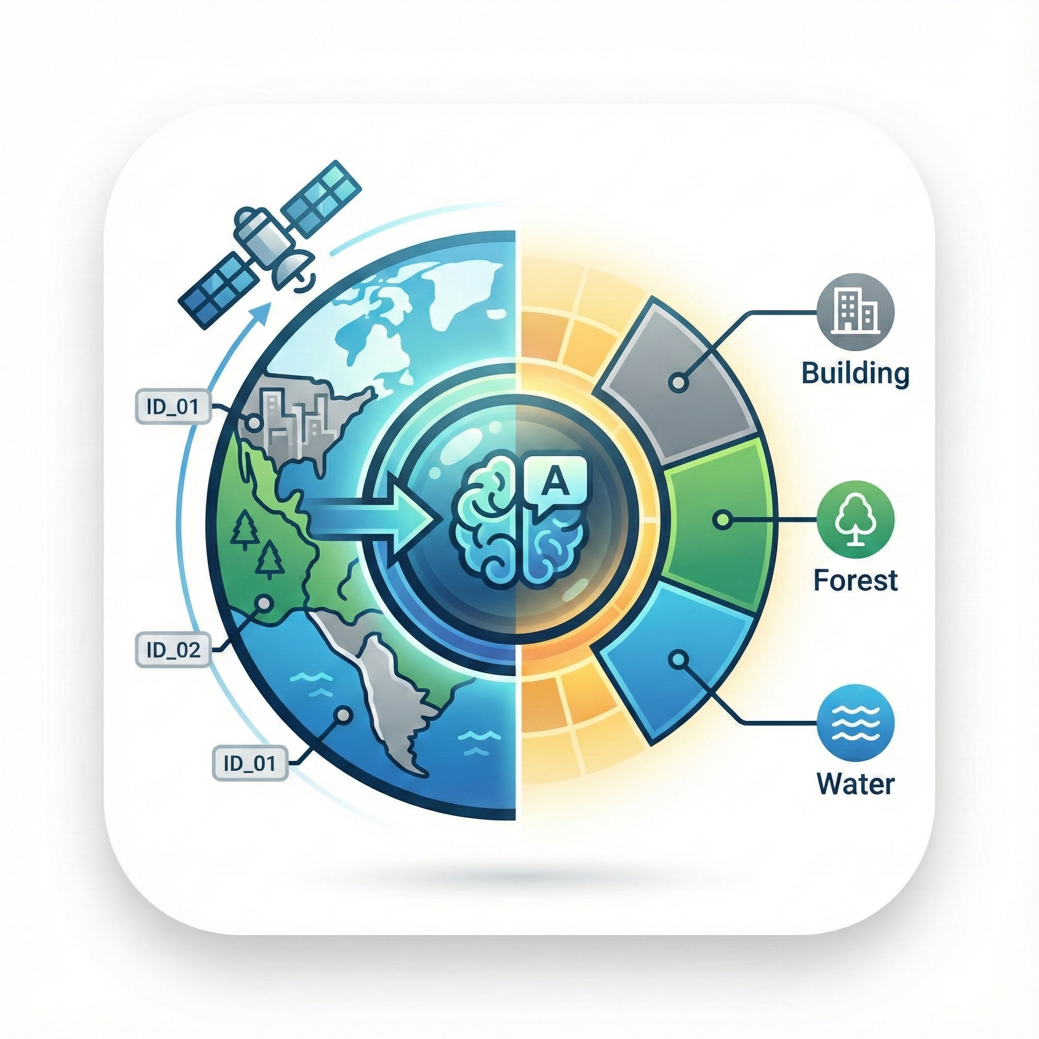 Land-cover understanding in remote sensing increasingly demands taxonomy-agnostic systems that generalize across datasets while remaining spatially precise and interpretable. We study a geometry-first discovery-and-interpretation setting under cross-dataset domain shift, where candidate regions are delineated class-agnostically and supervision avoids lexical class names via anonymized identifiers. Complementary to open-set recognition and open-world learning, we focus on coupling class-agnostic mask evidence with taxonomy-grounded scene interpretation, rather than unknown rejection or continual class expansion. We propose MVT, a three-stage framework that (i) extracts boundary-faithful region masks using SAM2 with domain adaptation, (ii) performs mask-grounded semantic tagging and scene description generation via dual-step LoRA fine-tuning of multimodal LLMs, and (iii) evaluates outputs with LLM-as-judge scoring calibrated by stratified expert ratings. On cross-dataset segmentation transfer (train on OpenEarthMap, evaluate on LoveDA), domain-adapted SAM2 improves mask quality; meanwhile, dual-step MLLM fine-tuning yields more accurate taxonomy-aligned tags and more informative mask-grounded scene descriptions.